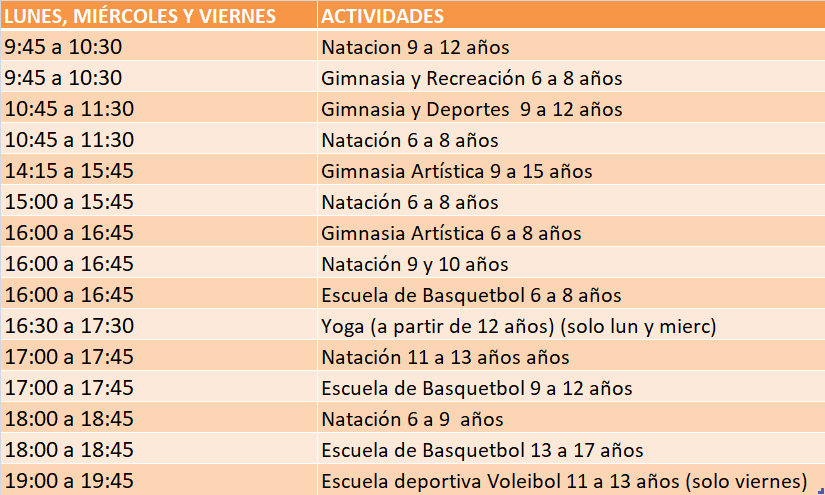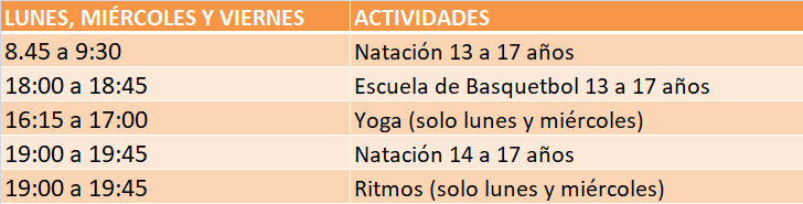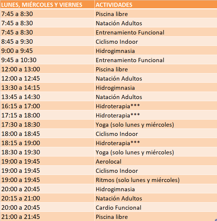 Las clases de Hidrogimnasia, enseñanza de natación y piscina libre se comparten con las de Adultos.